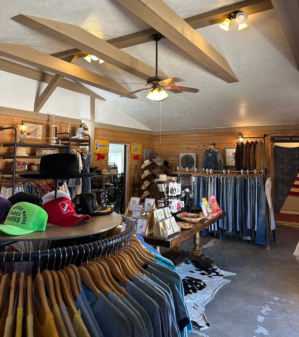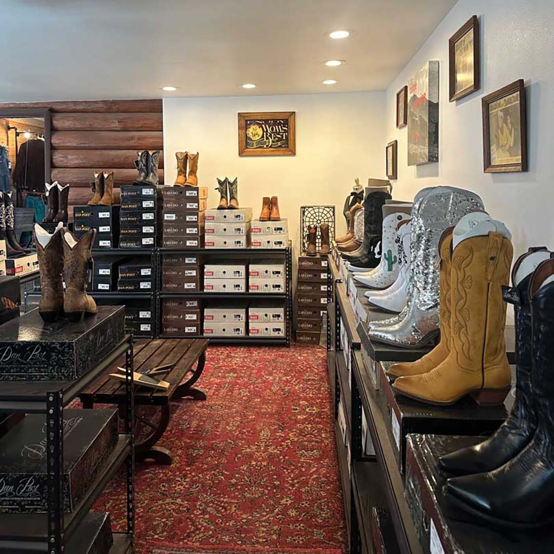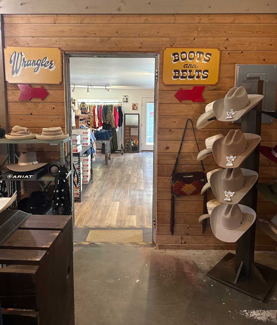 Vintage, western wear, boots, jewelry, hats, belts, and locally made souvenirs and gifts.