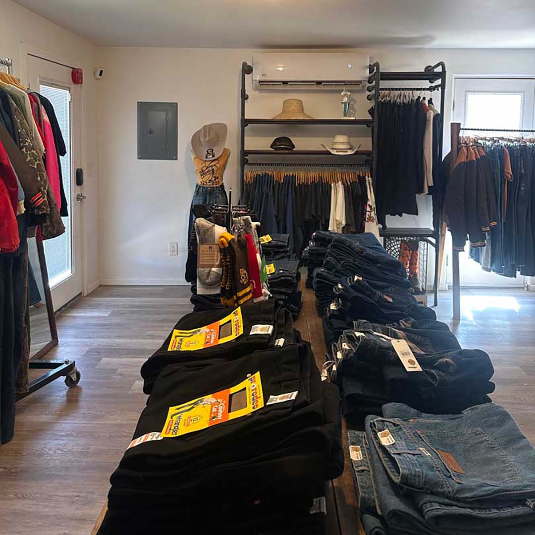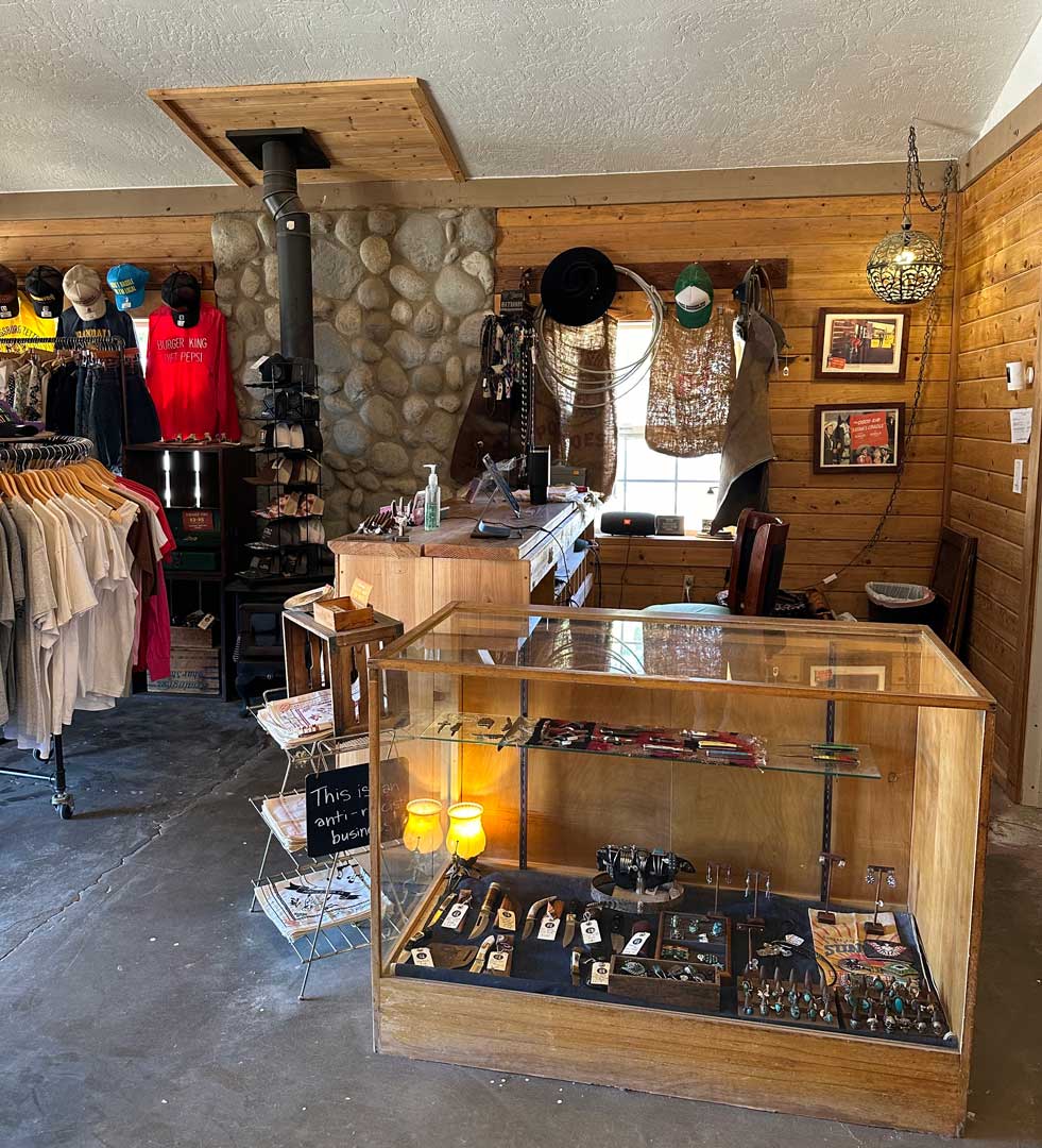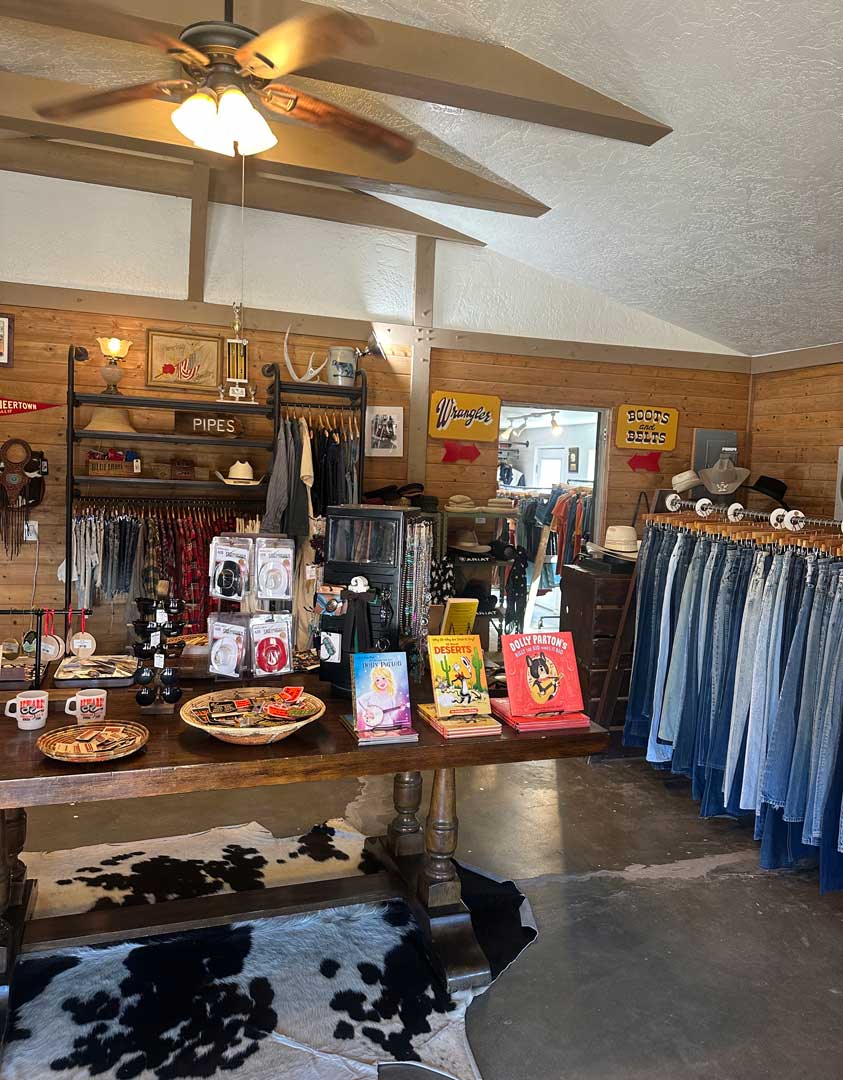 Vintage, western wear, boots, jewelry, hats, belts, and locally made souvenirs and gifts.