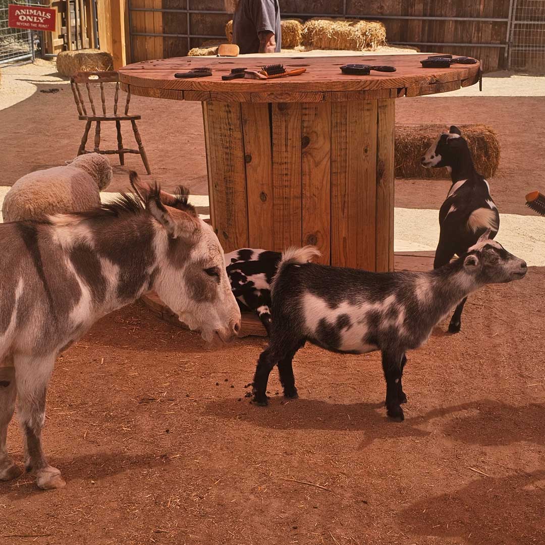 The Pioneertown Petting Zoo offers the experience to pet, feed and interact with miniature farm animals such as pigs, donkeys, goats, sheep, chickens, turkeys, ducks, cows and more for just $10 a person.